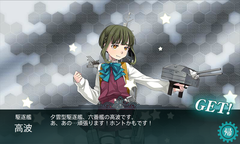 夕雲型駆逐艦、六番艦の高波です。 あ、あの・・・頑張ります!ホントかもです!