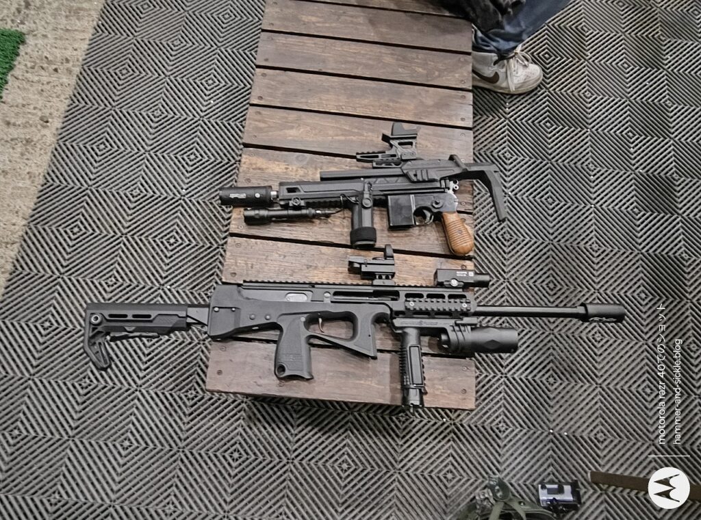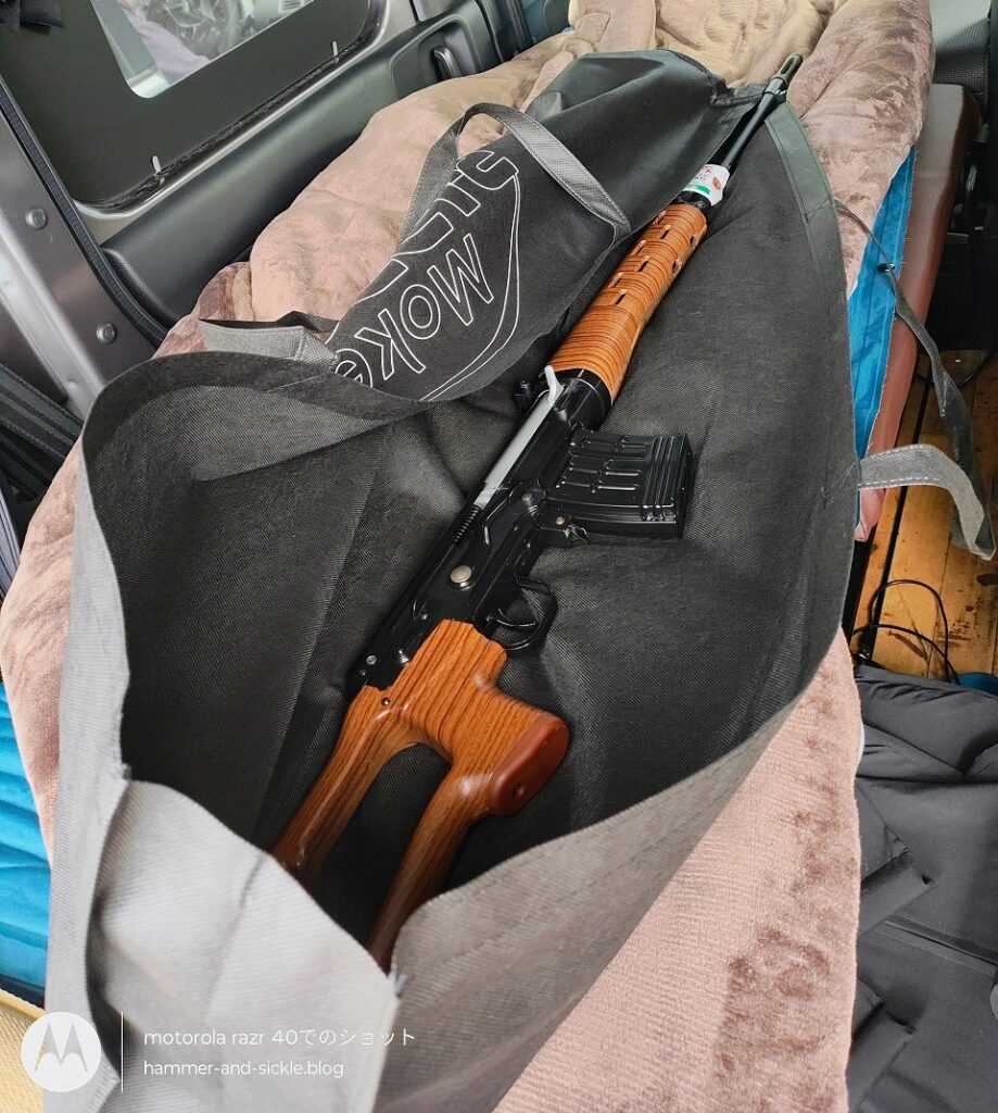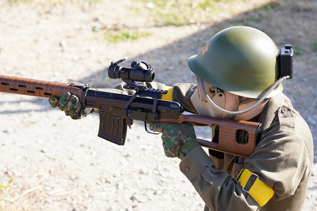 持っていたエアガンは「WSR-100(VSR-10ベースのSLONGカスタムモデル)」「S&T 38式歩兵銃」「WE-Tech SVD」の3本。
