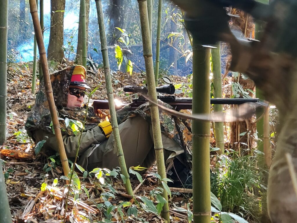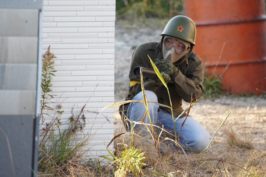 朝は霜が降りる程度に寒かったのでガスガンはもともに使えなかったのですがお昼ごろには多少温かくなり靴下用ホッカイロをマガジンに貼れば使える状況になってました。